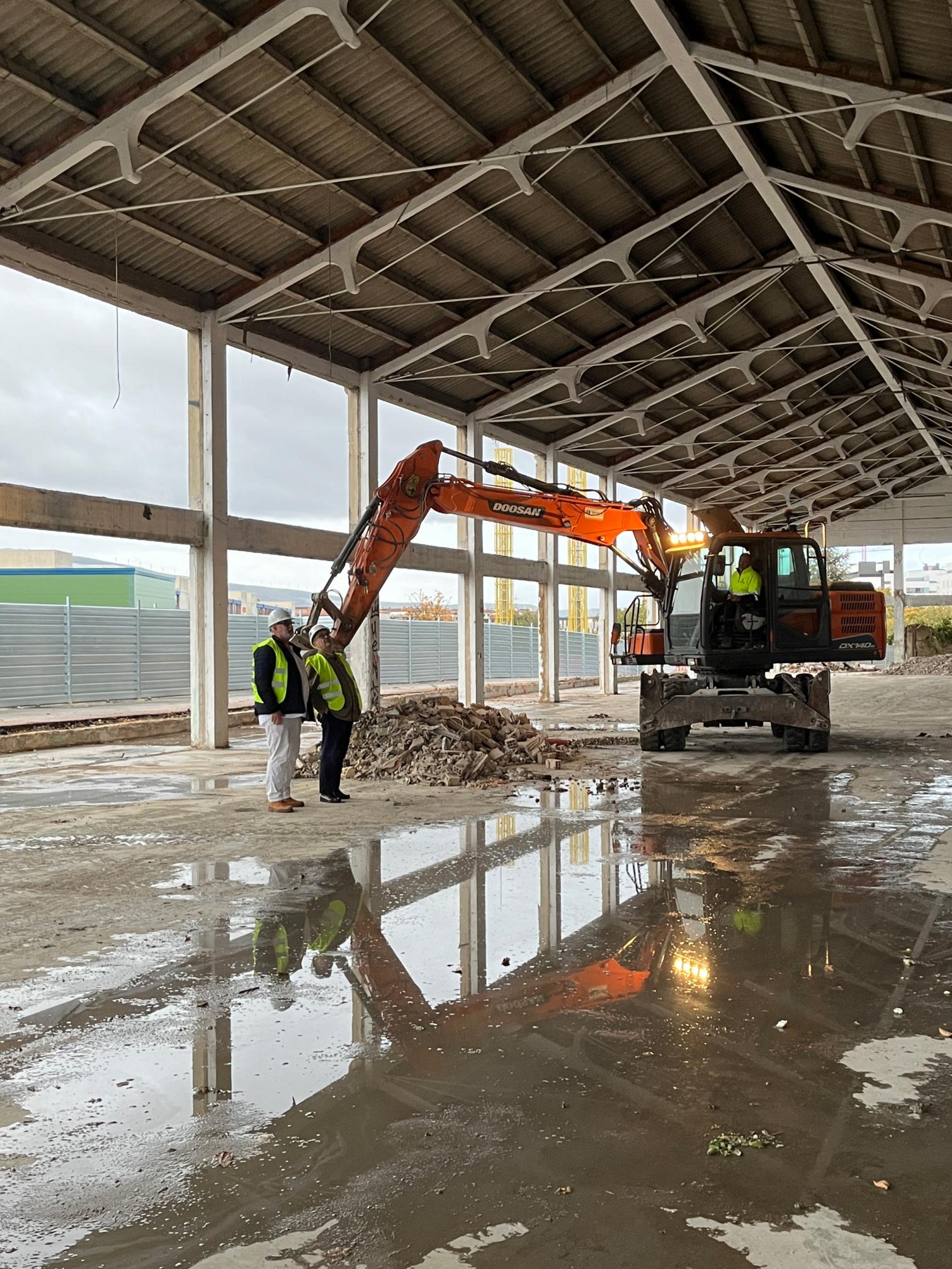 Last September, renovation work began on the buildings that will house the National Institute of Industrialization and Construction Robotics. The headquarters are strategically located near the University of Navarra and close to the future Circular City and Technology Hub of Navarra. The two adjacent buildings undergoing renovation have had various uses over time, ranging from storage to production. Images taken during the October 23 site visit show the powerful reinforced concrete structure supporting the building's roofs. They are made of different materials: one consists of ceramic trusses supported by reinforced concrete corbels and braced with metal tensioners, while the other consists of metal trusses braced with tensioners. The current layout of both buildings is perfectly suited to the need for two separate areas for the construction of prototypes and for offices and workshops, that must function in permanent dependence on each other.