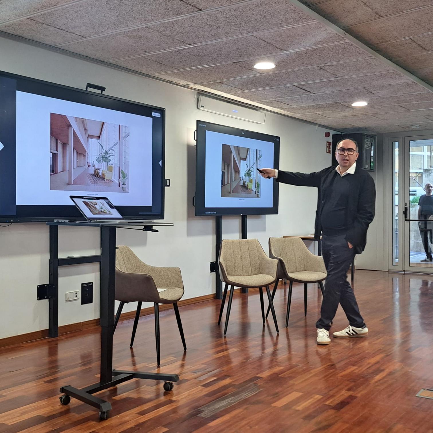 BAI ON SITE – Barcelona marked the first event in a new series promoted by the National Center for Robotics and Innovation in Architecture. It offered a direct encounter with the architect, the work, and a debate on industrialization in architecture. This format allowed BAI to present itself in Barcelona while dissecting a building emblematic of the institute’s emerging values. The aim was to combine dissemination, dialogue, and specialized knowledge around a project—whether under development or completed—so participants could immerse themselves in a tangible, emerging reality.