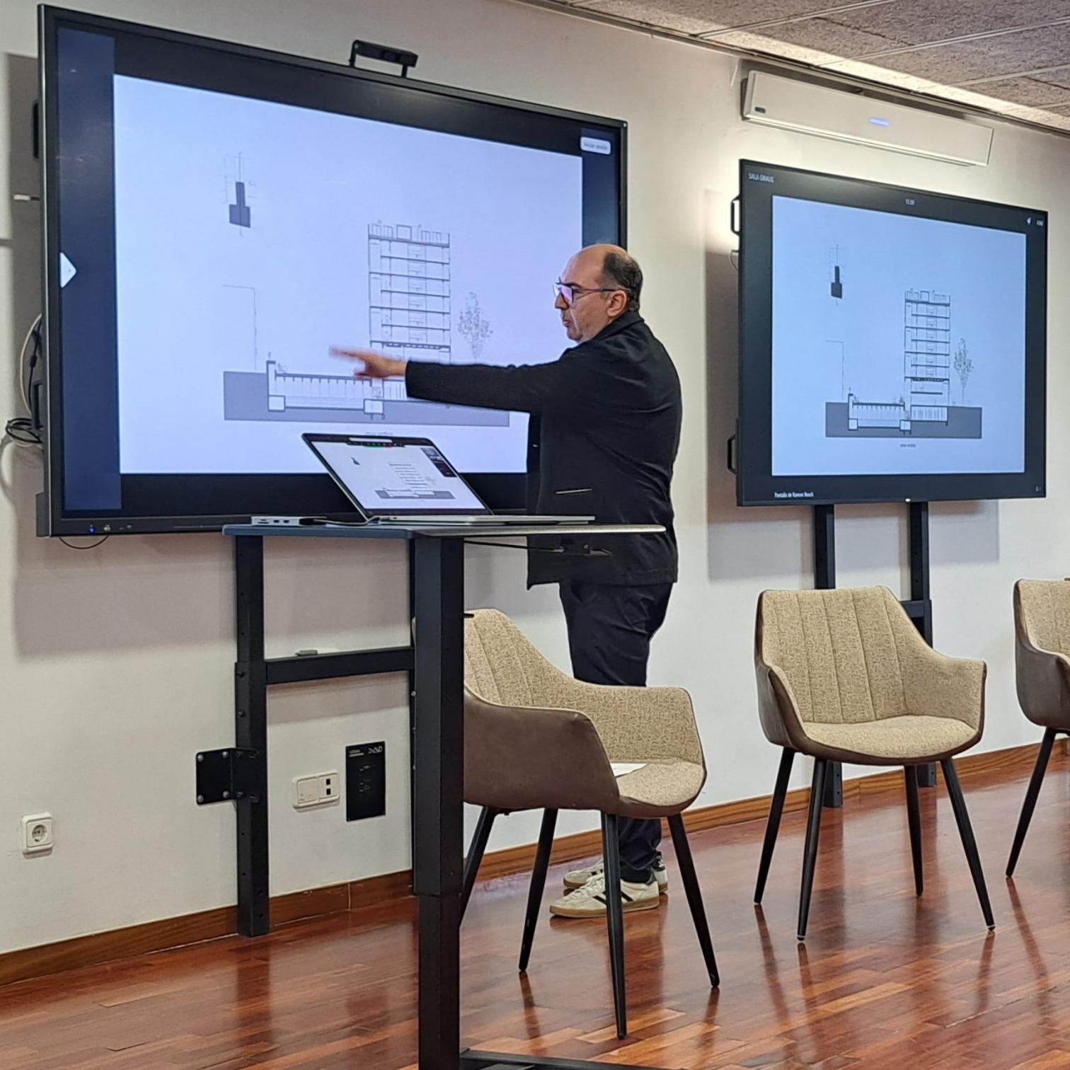 Bosch Capdeferro and their affordable housing block with a community gym in Sant Pau (Barcelona) formed the core of the session. Ramón Bosch explained the project’s key aspects on screen—from its intellectual genesis to critical construction details—preceding a site visit in its final development phase. Participants saw how the primary components, in this case wood, are precisely assembled while interacting with key elements like the Metro layout and existing residential buildings. The Sant Pau block clearly exemplifies sustainable, agile, and qualitatively distinct industrialization, from its foundation and multifaceted building systems to acoustic and finishing controls, offering participants a comprehensive understanding of contemporary construction processes. The building promises to transform both its neighborhood and the materialization methods of similar projects.