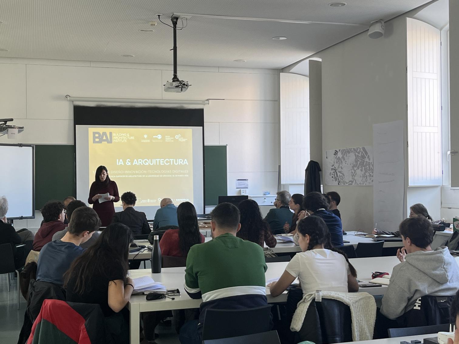 BAI ha celebrado en la Escuela Técnica Superior de Arquitectura de Granada el taller “IA & Arquitectura”, una actividad intensiva desarrollada del 16 al 20 de marzo de 2026 y dirigida a estudiantes de últimos cursos de Grado y Máster habilitante en Arquitectura, así como a jóvenes arquitectos/as. El taller, organizado junto a la Escuela Técnica Superior de Arquitectura de Granada y la Escuela Internacional de Posgrado de la Universidad de Granada, se planteó como una introducción aplicada al uso de la inteligencia artificial en la profesión del arquitecto/a.