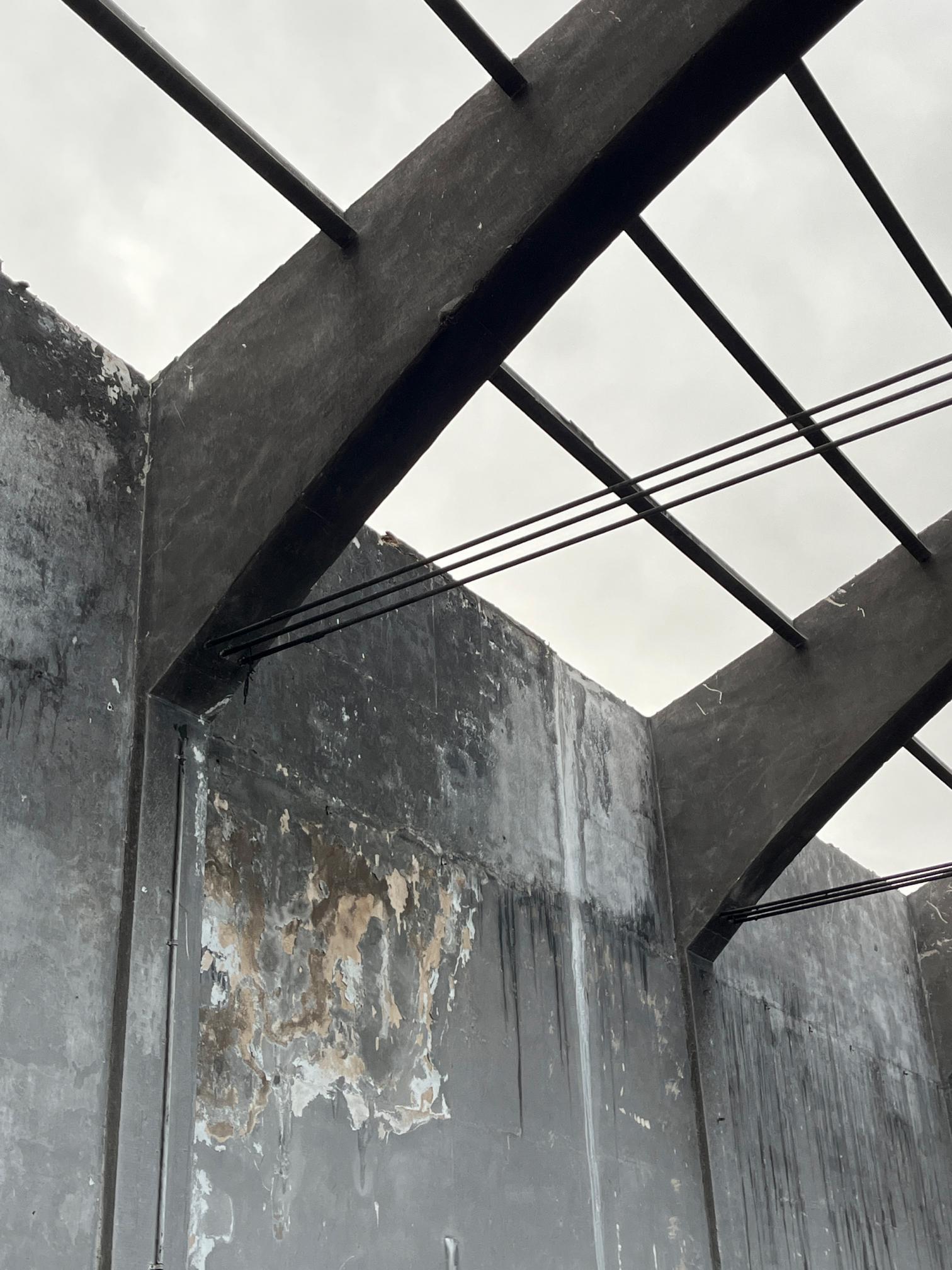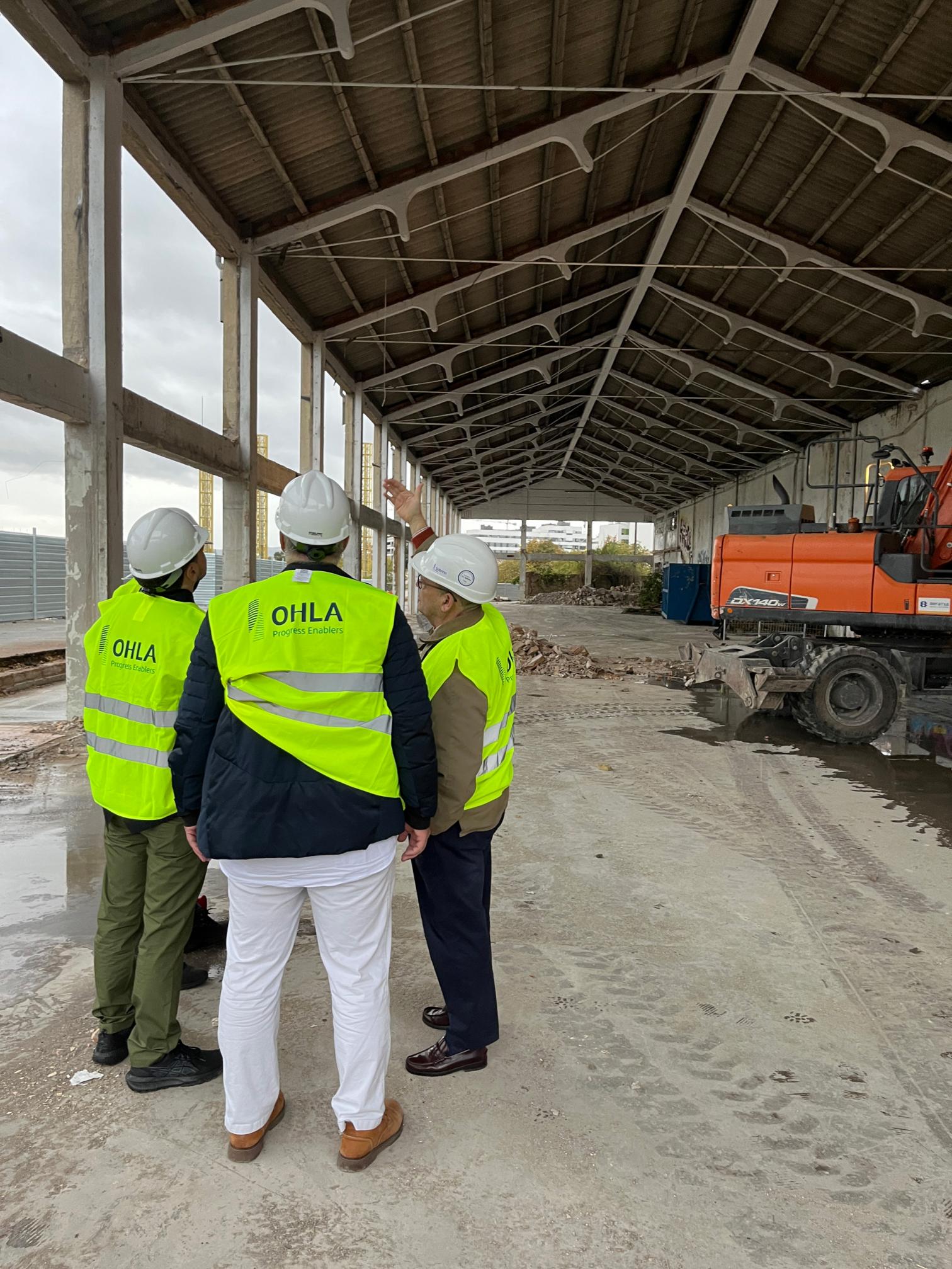 Las obras de rehabilitación de las naves donde se alojará la sede del Instituto Nacional de Industrialización y Robótica de la Construcción comenzaron el pasado mes de septiembre. El emplazamiento estratégico de la sede se sitúa cerca de la Universidad Pública de Navarra y próximo a la futura Ciudad Circular y Polo Tecnológico de Navarra. Las dos edificaciones preexistentes y yuxtapuestas sobre las que se actúa han tenido usos variados a lo largo del tiempo, desde almacenaje hasta fines productivos. En las imágenes recogidas durante la visita de obra realizada el 23 de octubre, puede observarse la potente estructura de hormigón armado que sostiene las dos cubiertas del edificio. Éstas albergan diferente materialidad, con una cubierta de cerchas cerámicas que apoyan en ménsulas de hormigón armado y se atirantan con tensores metálicos, y otra formada por cerchas metálicas igualmente atirantadas. La necesidad de contar con dos áreas diferenciadas para la construcción de prototipos y para la ubicación de los despachos y talleres, pero que a la vez han de funcionar con permanente dependencia, se adapta perfectamente a la presente disposición de ambas naves.