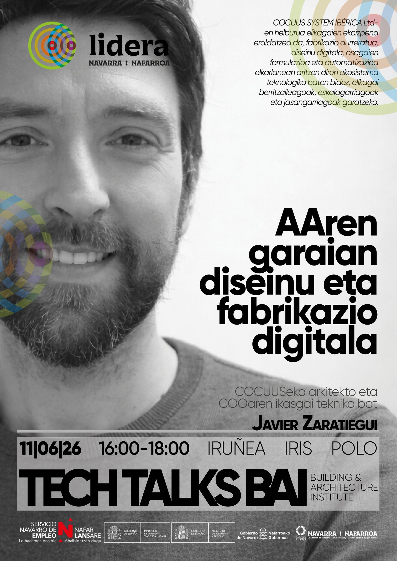 TECH TALKS BAIk Iruñean jarraitzen du, izaera teknikoko hitzaldi-ziklo gisa, BAIk bultzatua, prestakuntza, industria, enpresa, berrikuntza eta ekoizpen-errealitatearen arteko topagunea irekitzeko helburuarekin. Saio berri honetan, zikloak gaur egungo eraldaketa handienetako batean jartzen du arreta: adimen artifizialaren, diseinu digitalaren eta fabrikazio aurreratuaren arteko bateratzea.